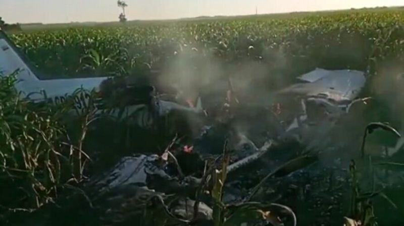 O avião é encontrado em chamas em meio ao milharal | Foto:Reprodução