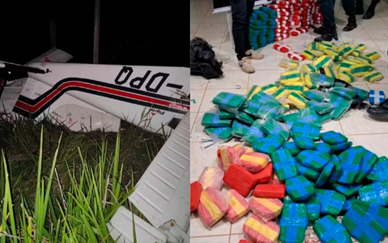 Moradores da região acionaram a Polícia após presenciarem a queda da aeronave. No local, os agentes encontraram os destroços do avião junto a 301 kg de entorpecentes do tipo oxi e cocaína.