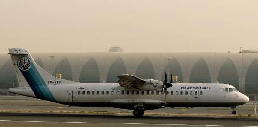 (Foto Fornecido por AFP) Avião da Aseman Airlines, modelo ATR-72, de fabricação francesa, no aeroporto de Dubai