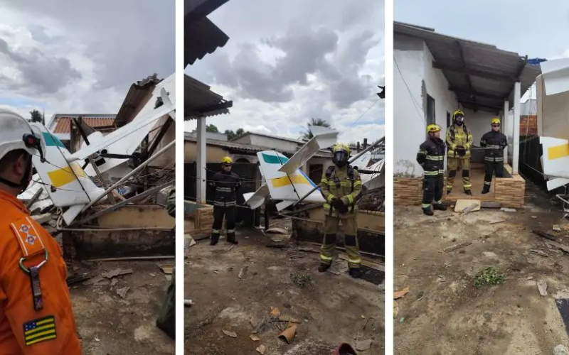 Vídeo: Avião monomotor cai sobre casa em Goiânia; piloto e moradora escapam ilesos