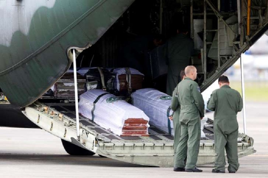 Ainda no aeroporto haverá uma homenagem fúnebre com a participação do presidente Michel Temer. De lá, os corpos seguem para a Arena Condá, onde acontecerá um velório coletivo com a presença da torcida da Chapecoense.