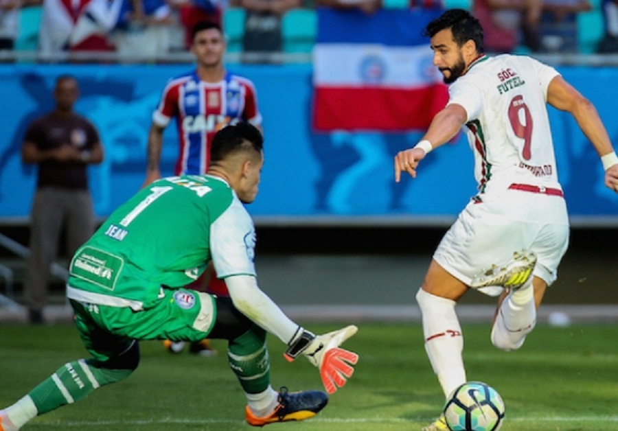 Fonte: Gazeta Esportiva (foto: Lucas Merçon) – Bahia e Fluminense se enfrentaram na tarde deste domingo na Arena Fonte Nova, em Salvador, pela décima segunda rodada do Campeonato Brasileiro, e não saíram do empate por 1 a 1. O Bahia dominou amplamente a partida, mas foi o Flu que saiu na frente no primeiro tempo com Wellington Silva. De tanto insistir, o Bahia chegou ao empate no final do segundo tempo, com João Paulo.