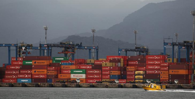 Contêineres no porto de Santos, no Estado de São Paulo