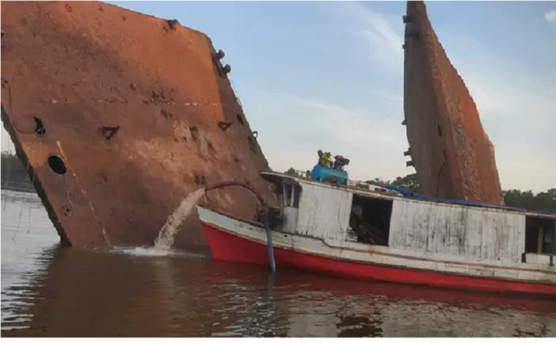 Balsa misteriosa no Marajó: estrutura é uma balsa naufragada em processo de reflutuação