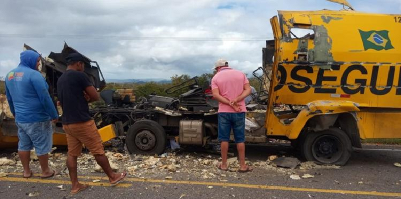 Um carro-forte ficou partido ao meio e destruído após uma tentativa de assalto nesta segunda-feira, 3, na cidade de Glória, norte da Bahia. Criminosos explodiram o veículo, roubaram uma espingarda calibre 12 e um revólver calibre 38 do motorista rendido e fugiram. O crime aconteceu por volta das 11h50, mas não houve feridos.