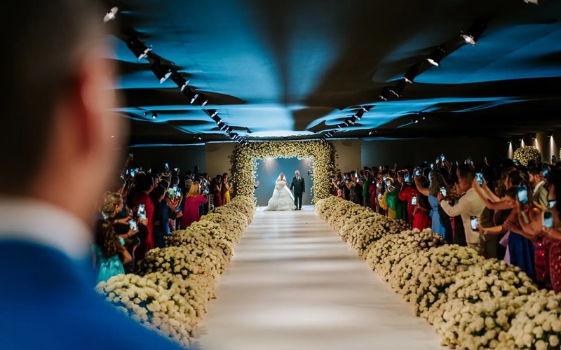 O evento reuniu 1.500 convidados e chamou atenção pela decoração luxuosa de Célio Corrêa, com 140 mil botões de rosas no teto, 200 mil rosas pelo salão e 35 mil mudas de orquídeas. Rayssa entrou ao som de “Hallelujah”, acompanhada do pai, sócio do grupo Bom Futuro e apontado como um dos investidores do Internacional em 2024.