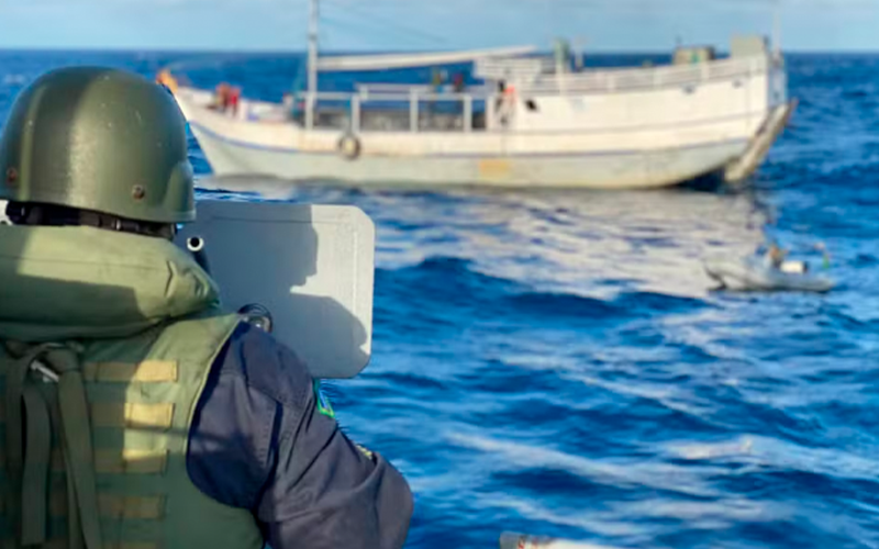 Um navio da Marinha escoltou e conduziu o barco com os tripulantes e as cargas do local de apreensão até o porto de Belém.