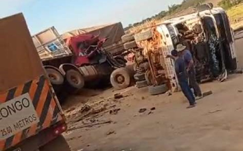 Batida frontal entre caminhões na tarde desta sexta-feira ,4 de agosto de 2023, próximo ao distrito de Vila Isol, em Novo Progresso;Vídeo.