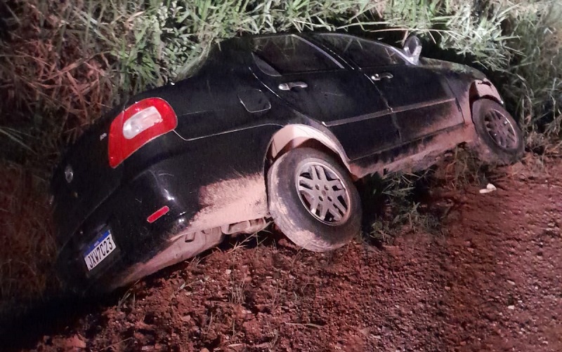 Bêbado, motorista perde controle de carro e fica pendurado em vala