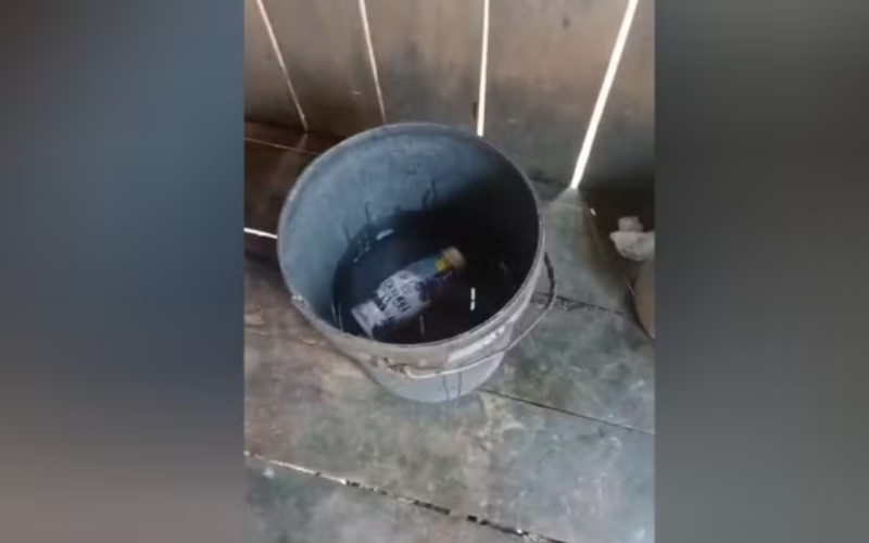 Familiares informaram ao Conselho Tutelar que encontraram a menina dentro do balde, com as perninhas para cima, já em óbito.