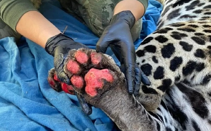 Patas da Itapira, onça-pintada de um ano e meio, foram queimadas no fogo do Pantanal Sul Imagem: Acervo Onçafari