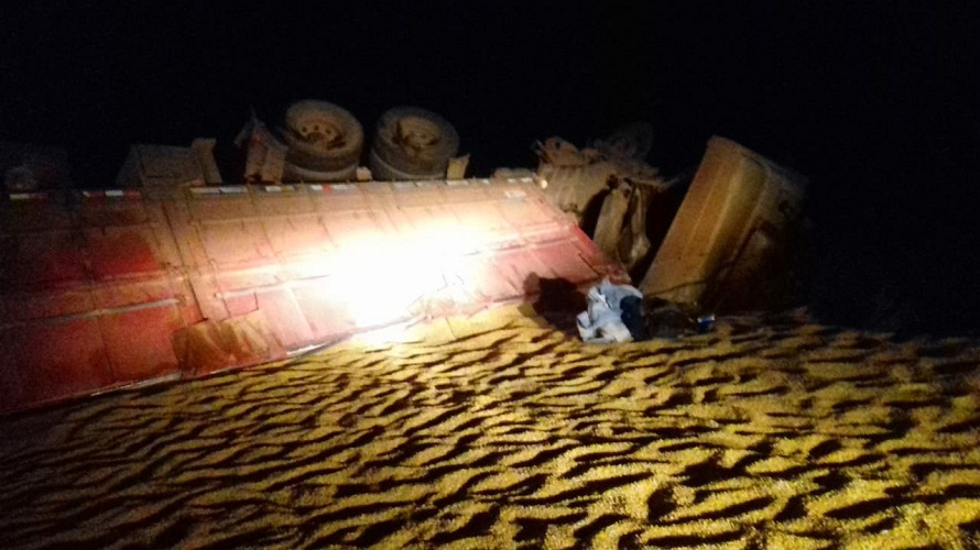 Um colisão envolvendo um bitrem e um veiculo [modelo não identificado] de cor prata na madrugada deste domingo (23), matou uma pessoa. O acidente aconteceu na rodovia federal BR 163 nas proximidades do frigorífico Redentor no município de Novo Progresso. (Foto:WhatsApp Jornal Folha do Progresso)