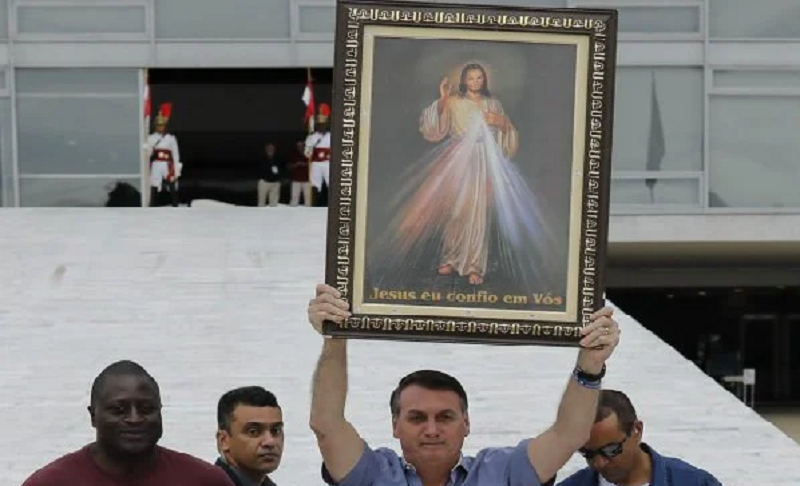 Jair Bolsonaro levantando imagem de Jesus /Foto:Reprodução/Redes sociais