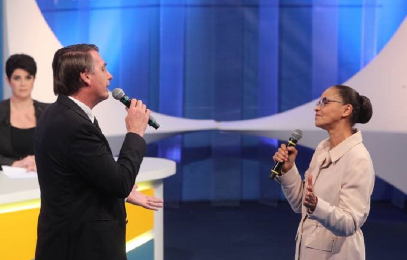 Os candidatos à Presidência da República Jair Bolsonaro (PSL) e Marina Silva (Rede) participam de debate eleitoral promovido pela RedeTV! – 17/08/2018 (Foto:Daniel Teixeira/Estadão Conteúdo)