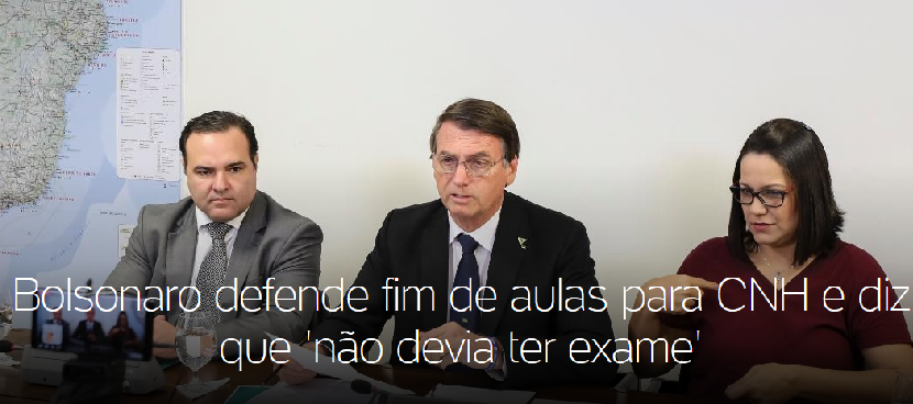 (Foto:Reprodução)- O presidente Jair Bolsonaro defendeu o fim das aulas teóricas e práticas para tirar a CNH (Carteira Nacional de Habilitação) na transmissão ao vivo semanal nas redes sociais, feita ontem. Na live, o chefe do governo federal chegou a dizer que “nem devia ter exame para nada”.