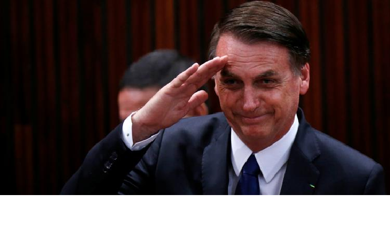 A primeira-dama Michelle Bolsonaro e o filho Carlos acompanham o presidente