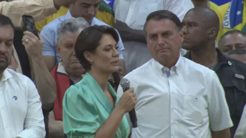 Bolsonaro subiu ao palco ao lado de Michelle e, às 11h30, pegou o microfone. Após citar uma curta passagem bíblica sobre o valor da “mulher virtuosa”, deu a palavra para Michelle abrir os discursos.