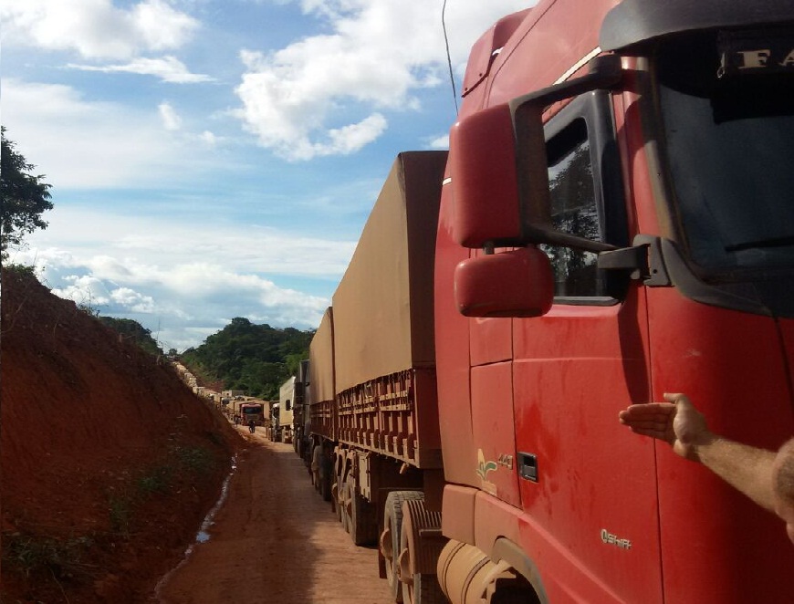 Segundo o secretário, o exercito matem uma guarita nas duas pontas onde termina a pavimentação [entre a comunidade de Três Bueiras, e distrito de Caracol no município de Trairão], a fila ainda continua “existe no trecho ,mais de 1,800 caminhões parados nos atoleiros , o exercito abre e fecha a rodovia em tempo alternado, a prioridade é para veículos menores e ônibus que transportam passageiros, depois libera os caminhões, chove muito na região, o DNIT trabalha colocando pedra e cascalho nos atoleiros, a fila ainda é quilométrico da BR 163 em sua maioria , são motoristas do Mato Grosso que transportam cargas de produtores de grãos daquele Estado, relatou.