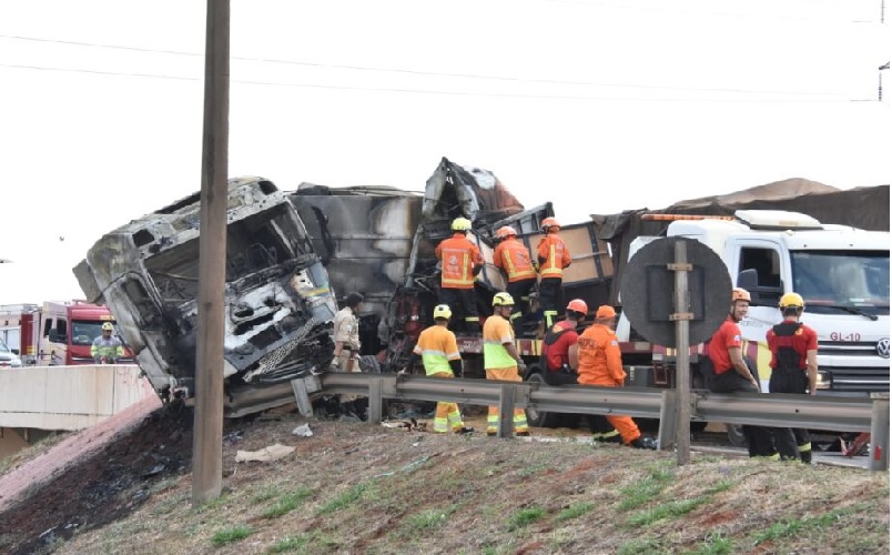 Segundo o Corpo de Bombeiros, o acidente aconteceu por volta das 13h20min e envolveu duas carretas, havendo suspeita de participação de um terceiro caminhão, que será investigada pelas polícias Rodoviária Federal (PRF) e Civil.