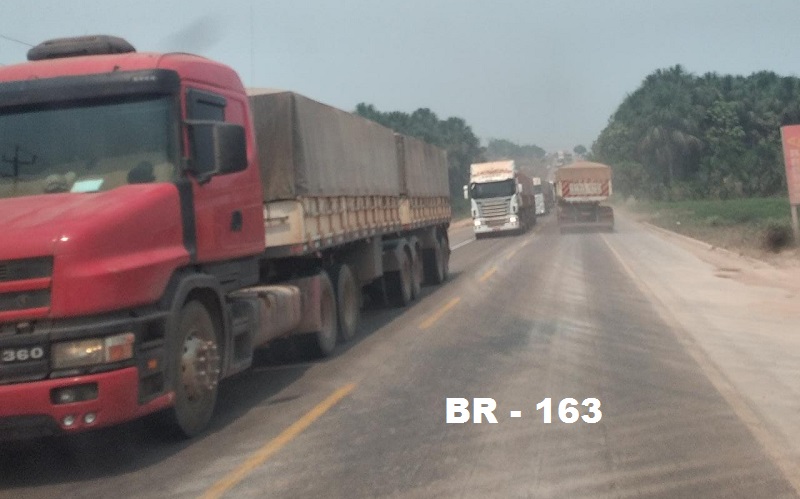 A BR-163, cujo asfaltamento foi concluído em fevereiro deste ano, é a principal via de escoamento dos grãos do Centro-Oeste para os portos fluviais de Miritituba (rio Xingu) e Santarém (foz do Tapajós) e tem um fluxo diário de mais de 2,5 mil carretas ao dia. Nesta época do ano, elas estão terminando o transporte da safrinha de milho do Centro-Oeste para os portos de Miritituba e Santarém.