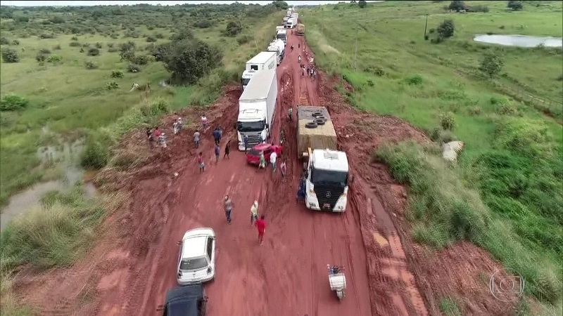 É de testar a paciência e os braços também. Um dos trechos mais complicados da rodovia é o que fica bem perto da divisa entre o Maranhão e o Pará. Durante todo o dia, o cenário se repete: caminhões atolados, motoristas esperando — os que se arriscam passam com toda a dificuldade.