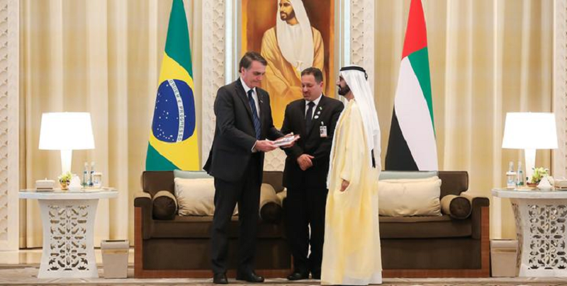 Em visita oficial aos Emirados Árabes Unidos, o presidente Jair Bolsonaro firmou oito atos bilaterais com o país do Oriente Médio em várias áreas como paz e segurança, cooperação econômica, inteligência artificial, meio ambiente e defesa. A comitiva brasileira foi recebida, neste domingo (27), em Abu Dhabi, pelo príncipe herdeiro do país, Xeique Mohammed bin Zayed Al Nahyan.