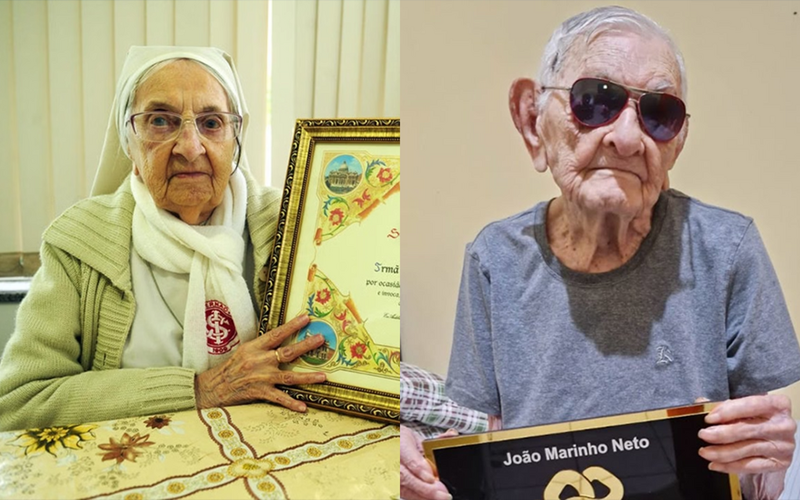 Foto: Reprodução | Após a morte da japonesa Tomiko Itooka, em dezembro de 2024, a freira gaúcha Inah Canabarro Lucas, de 116 anos, passou a ser reconhecida como a mulher mais velha do mundo. João Marinho Neto, de 112 anos, lidera como o homem mais velho, e o ranking inclui ele e outros dois brasileiros entre os cinco homens mais longevos do planeta.