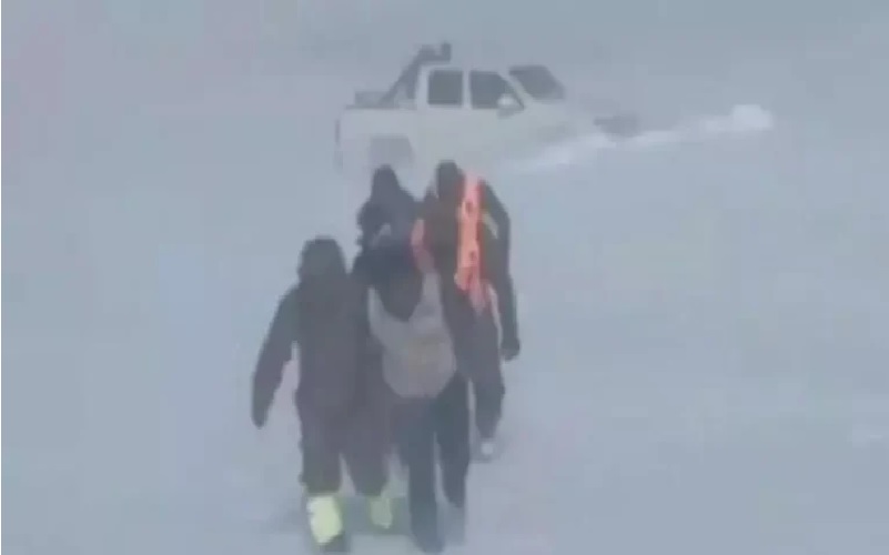 (Foto: Reprodução) – O grupo estava na Rota CH-27, próximo à fronteira com a Bolívia, onde a neve acumulada chegou a cerca de 60 cm, e a temperatura caiu para -7 °C.