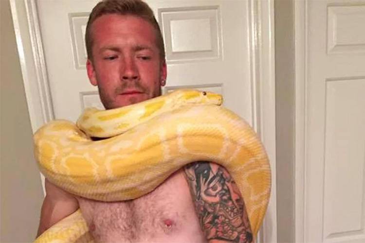 Segundo a investigação, a cobra de 2,4 metros demonstrava seu afeto ao se enrolar no pescoço do dono