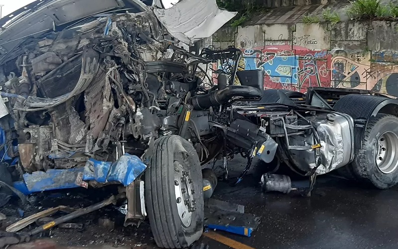 O caminhoneiro conseguiu sair do veículo e foi socorrido. Até as 8h não havia informações sobre o estado de saúde dele.