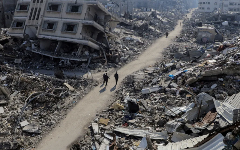 Área destruída do campo de refugiados de Jabalia, na Faixa de Gaza • Foto: REUTERS/Mahmoud Issa