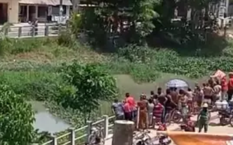 Imagem dos moradores ao redor do canal onde o corpo foi localizado. (Foto: Redes Sociais)