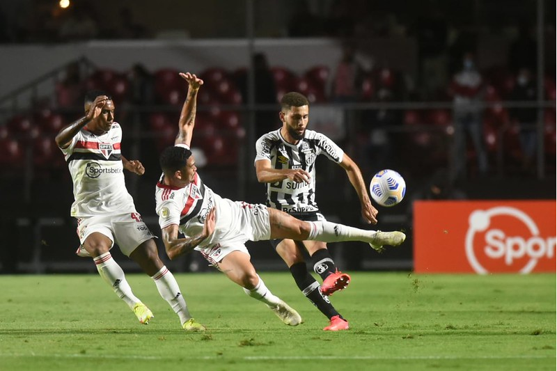 O jogo – O São Paulo iniciou o jogo com bastante intensidade, tentando propor o jogo, mas, na primeira oportunidade que o Santos teve, abriu o placar. Aos cinco minutos, Carlos Sánchez recebeu com bastante liberdade na entrada da área e teve tempo para dominar, ajeitar e bater colocado, sem chances para o goleiro Tiago Volpi. A bola ainda bateu na trave antes de morrer no fundo das redes.