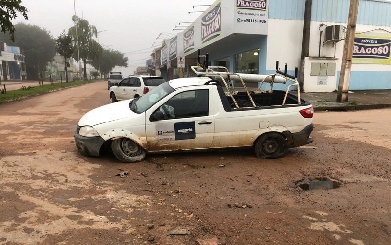 Câmera de segurança flagra veiculo da Equatorial Energia passando por cima da rotatória no centro de Novo Progresso