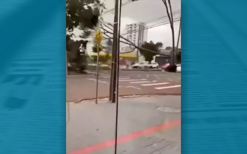 Câmera flagra árvore sendo derrubada durante temporal no Paraná; assista