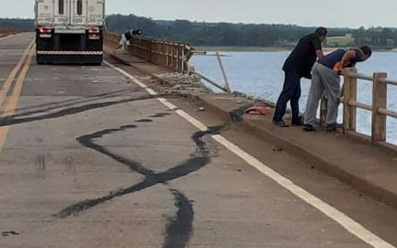 Um caminhão desabou de uma ponte de 53 metros em cima da represa Chavantes, entre os estados de São Paulo e Paraná na manhã desta quarta-feira (13). O motorista que conduzia o veículo morreu na hora.