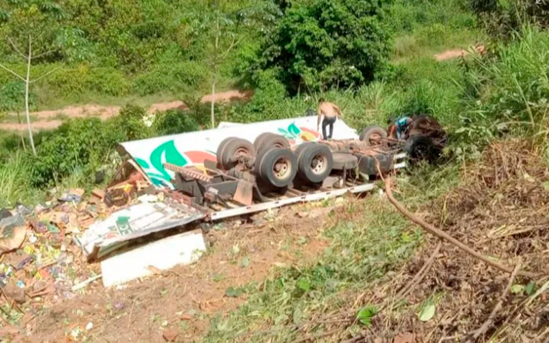 Caminhão cai em ribanceira após motorista dormir ao volante em Pacajá
