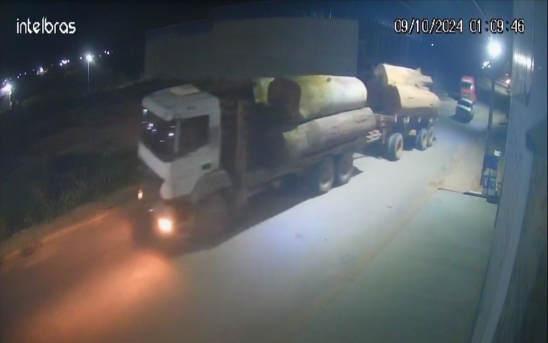 Um caminhão foi flagrado por câmeras de segurança noturna trafegando pela via pública e deixando o rastro da destruição.