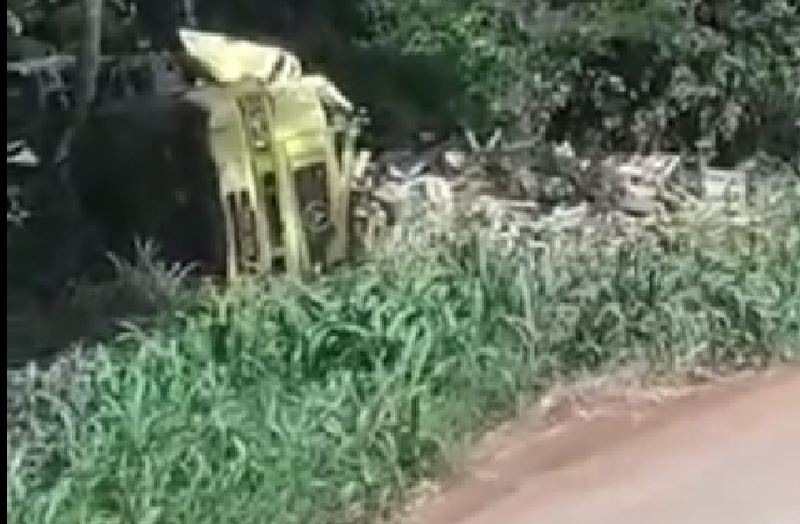 Um caminhão Mercedes Placa MCR 1630 de cor amarela , da cidade de várzea Grande (MT) tombou na rodovia BR 163 na manha desta quinta-feira (4 ) , no trecho conhecido como “Serra Magi”, entre as comunidades de Moraes Almeida e Aruri.