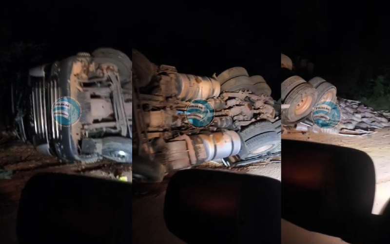 Foto: Reprodução | Um caminhão tombou na noite desta quinta-feira (29) ao descer a perigosa Serra da Cobra, trecho crítico da Transgarimpeira, estrada de chão que liga Moraes Almeida ao distrito de Cripurizão, no sudoeste do Pará.