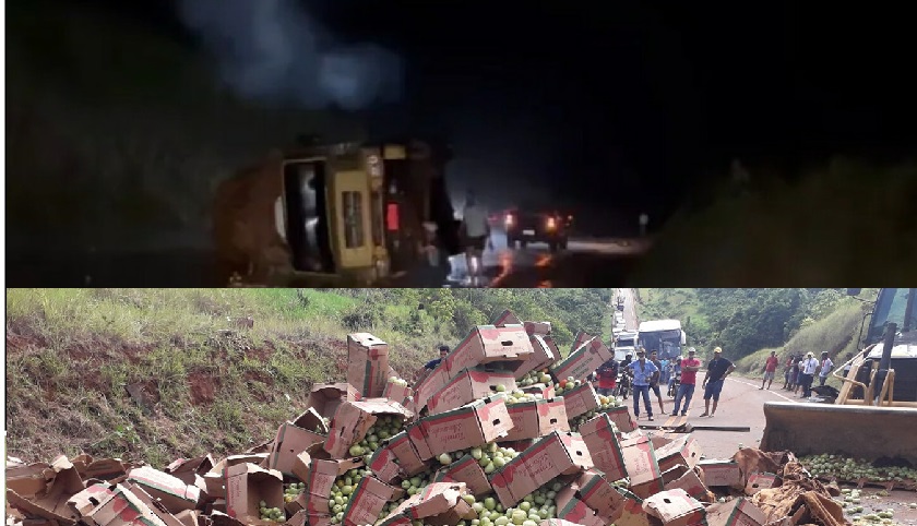 Um caminhão que levava uma carga de tomate acabou tombando por volta das 02h00 da madrugada desta segunda-feira (04/04/2022), no km 23 da Br-230, no trecho entre os Municípios de Altamira e Brasil Novo.