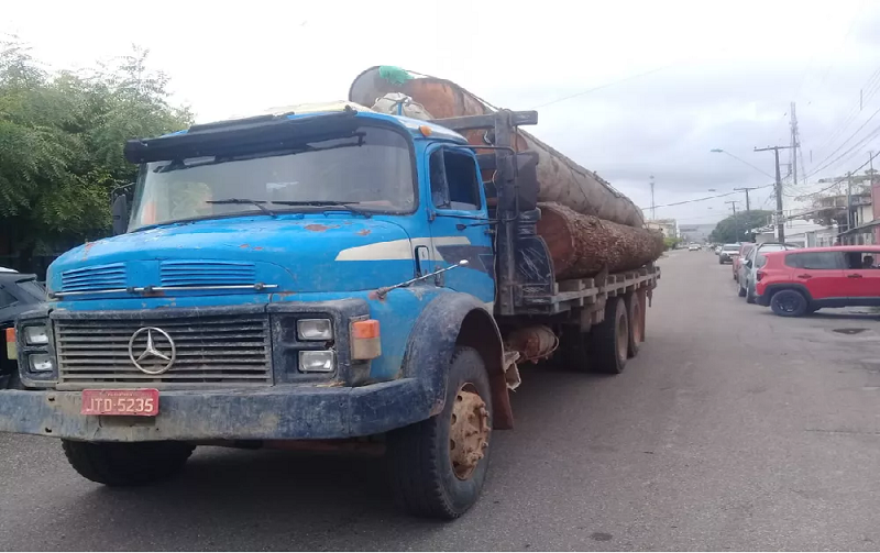 Um caminhão madeireiro carregado com torras foi apreendido na noite de segunda-feira (6) na região da Rodovia Estadual PA-370, em Santarém, no oeste do Pará. O motorista do veículo foi preso por crime ambiental e também por porte ilegal de duas armas de fogo.