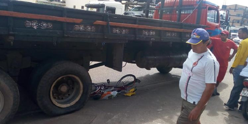 Segundo testemunhas, um caminhão avançou o sinal vermelho e passou por cima de um senhor de 72 anos que trafegava de biclicleta. Ele morreu esmagado. A biclicleta está completamente destruída.