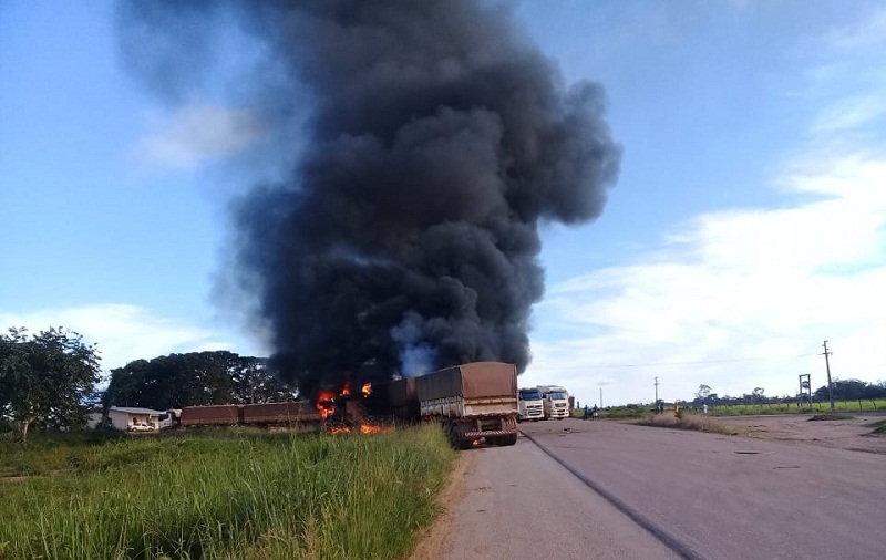 Caminhão provoca acidente é destruído pelo fogo na BR 163 próximo ao distrito de Vila Isol em Novo Progresso