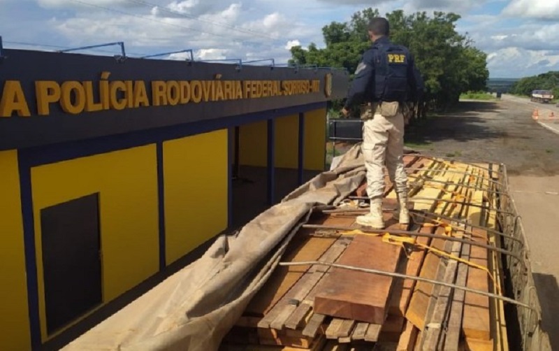 Na manhã de domingo, 18 de dezembro de 2022, uma equipe da Polícia Rodoviária Federal em fiscalização da BR-163, no município de Sorriso/MT, abordou um veículo carregado com madeira ilegal.