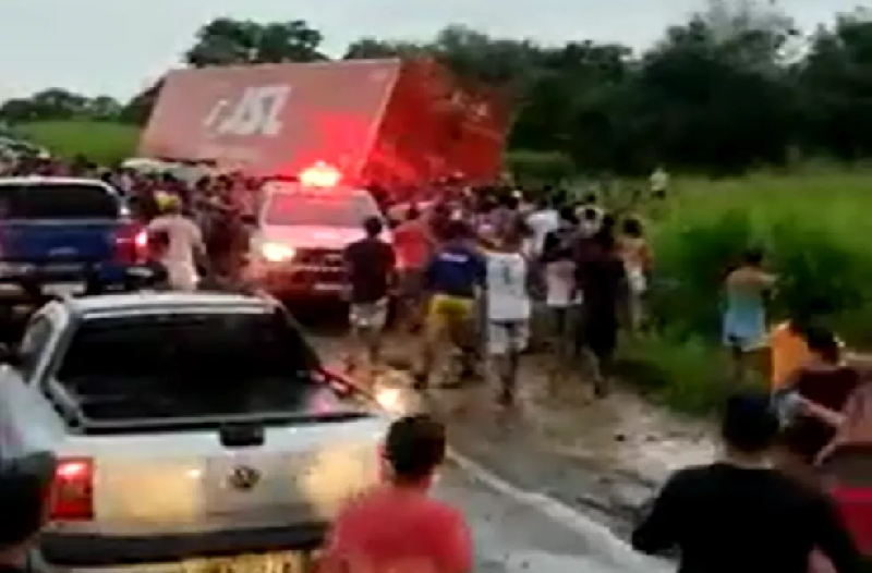 Caminhão tomba e carga de eletrodomésticos é saqueada na BR-010, no Pará