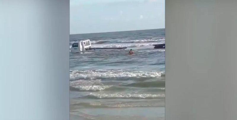 Caminhões guincho tentam desatolar carro e acabam engolidos por maré de praia do Pará
