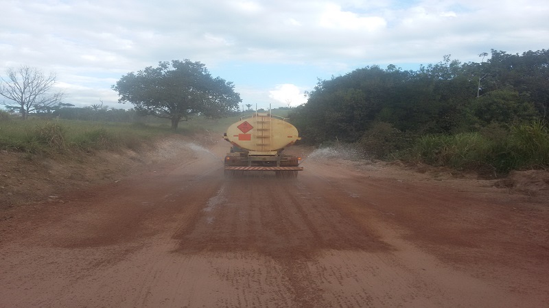 As comunidades da Vila Isol (Km 1000), Alvorada da Amazônia e Santa Julia, contam com um caminhão pipa cada molhando as ruas.