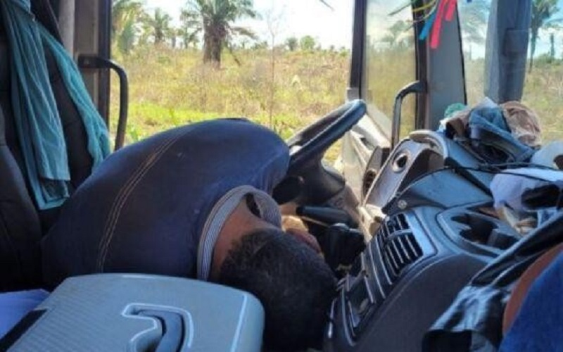 A partir daí, um grupo de caminhoneiros desceu para chamar a atenção do motorista, quando se depararam com um corpo morto na cabine.