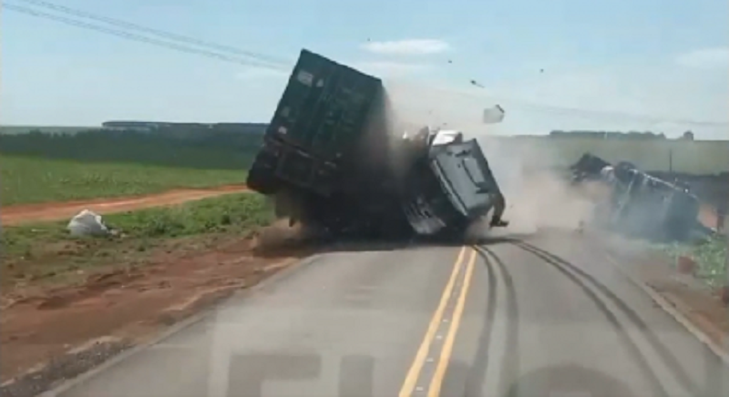 Batida foi registrada por um caminhoneiro que transitava na rodovia, logo atrás de uma dos veículos envolvidos. Objetivo dele era filmar e comentar acidente ocorrido com um colega motorista.